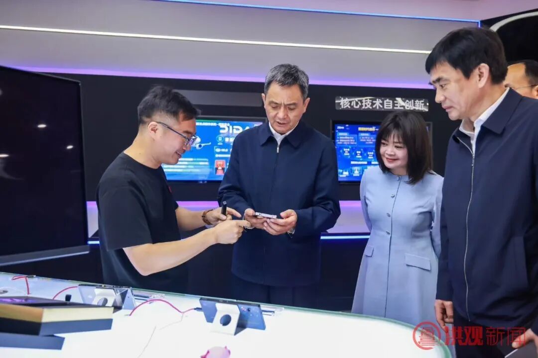 南昌努比亚技术有限公司主营通讯设备、手机配件生产,在手机摄影、功耗管理等技术领域获得多项专利。目前共拥有全球专利申请3500余项,在业界处于领先地位。公司已投产旗舰智能手机Z系列、红魔系列,其中红魔游戏手机部分机型搭载液冷系统,将电竞手机散热能力提升至新高度,深受市场欢迎。李红军察看企业生产线,详细了解企业生产经营、科技创新等情况,对企业发展取得的成效表示肯定。得知企业订单饱满、产品需求旺盛后,李红军要求有关单位主动靠前,服务保障好企业的供应链稳定,及时帮助企业解决生产经营中遇到的困难和问题,为企业建立良性发展循环创造良好条件、提供优质服务。希望企业紧盯行业前沿,聚焦市场需求,持续开辟新赛道、拓展新板块,推动企业做大做强。