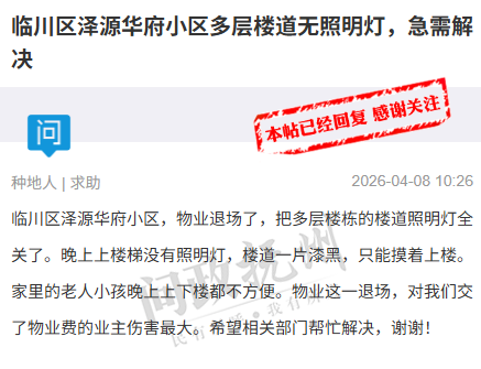 社区已逐户上门征求业主对小区管理的意见和建议。针对小区楼道灯等公共设施缺乏维护的问题,目前社区正协助业主办理小区公共账户,用于规范管理公共费用收支。相关公告已张贴公示,集资缴费筹备工作正有序推进。待公共账户办理完成后,将及时组织居民缴纳公共电费,尽快恢复楼道正常照明。下一步,社区将持续根据业主意愿做好协调沟通与服务协助工作,也希望广大业主积极履行自身义务,共同维护小区正常居住环境。