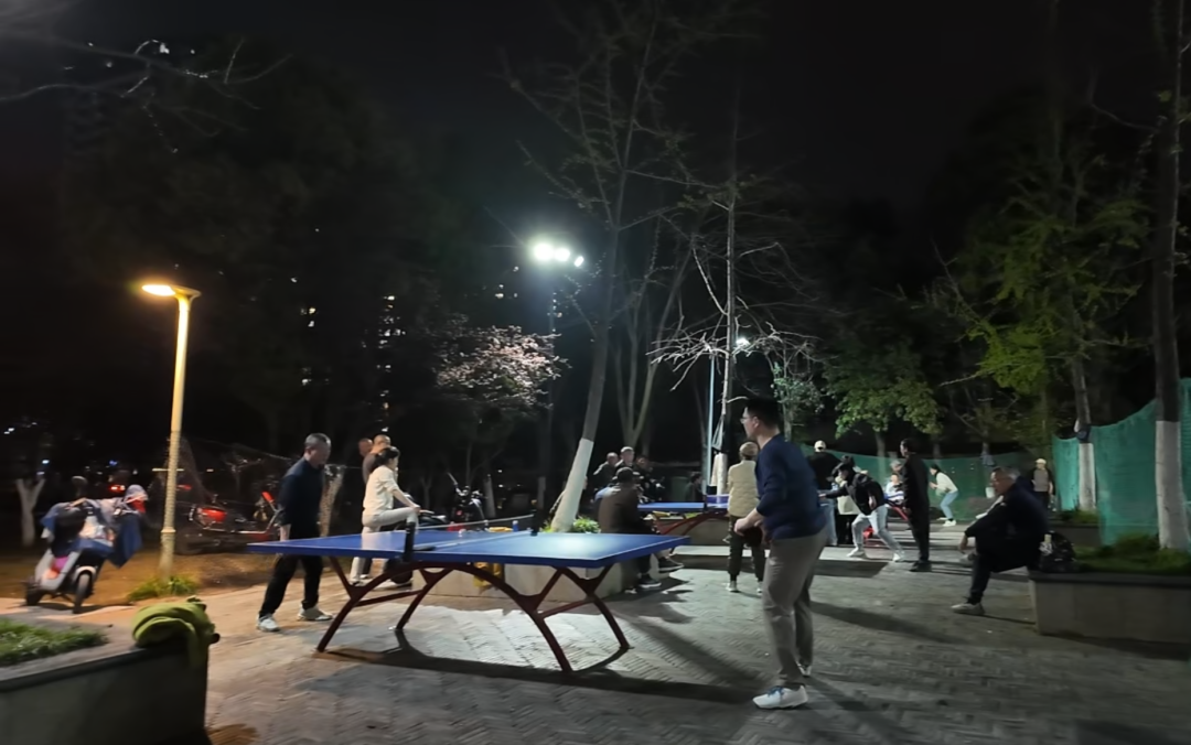 记者在现场看到,康嘉公园核心健身区域的棚子底下,没有一盏路灯,旁边是儿童游乐设施和健身设施,远处只有乒乓球台有几盏路灯。漆黑的健身区内,几位居民小心翼翼地行走,偶尔有孩子在游乐设施旁玩耍,家长们时刻紧绷着神经,生怕孩子摔倒受伤。
