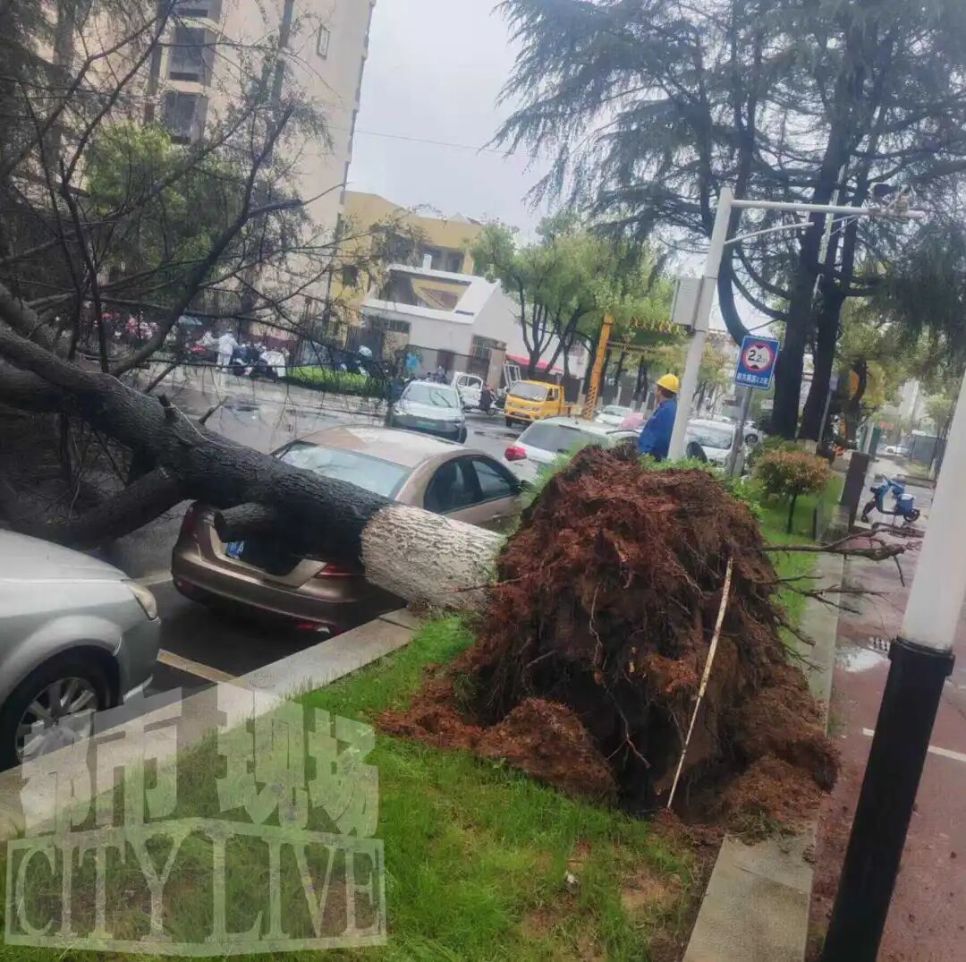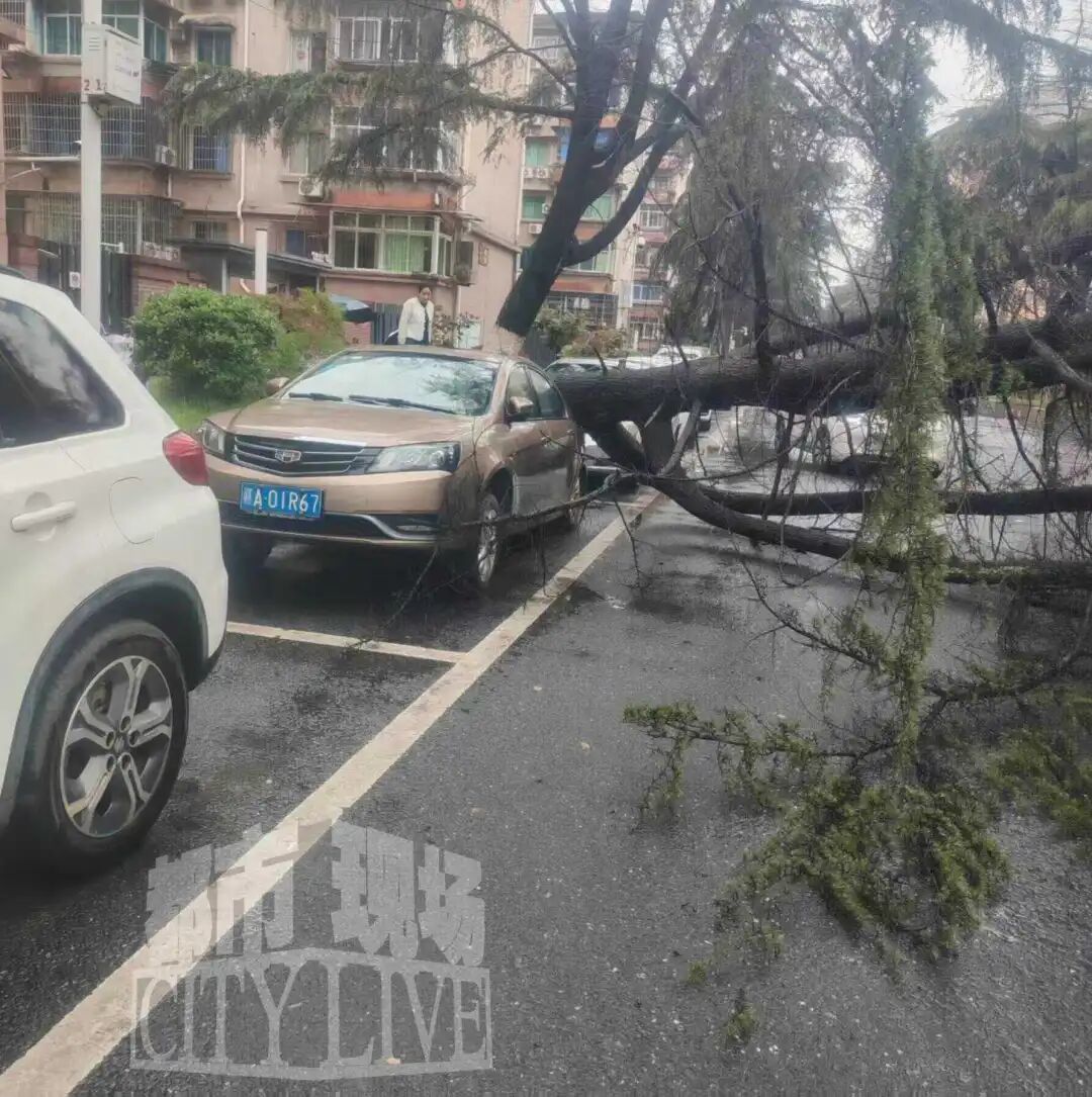 戴先生用手机拍下了惊魂一幕。4月3日那天,他的车就停在南昌新溪桥东一路边,雨刚歇脚,“轰隆”一声,一棵三层楼高的大树直直砸了下来,正中车尾。