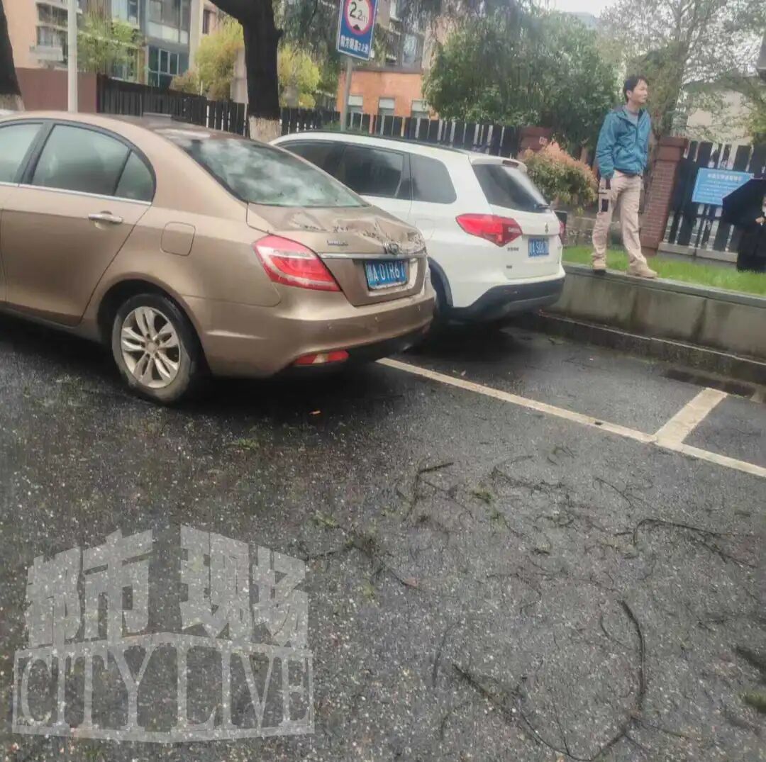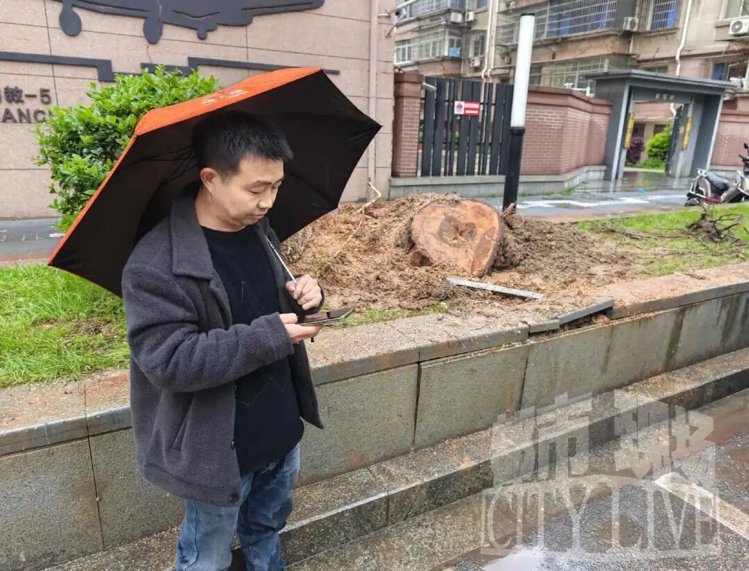据戴先生回忆,一棵大树倒下后砸中了他的后备箱,前轮都被压得翘了起来,整条马路也被堵住了。他后来跑到交警大队,对方说这不归他们管,让他直接找园林部门,可他连园林在哪都不清楚。
