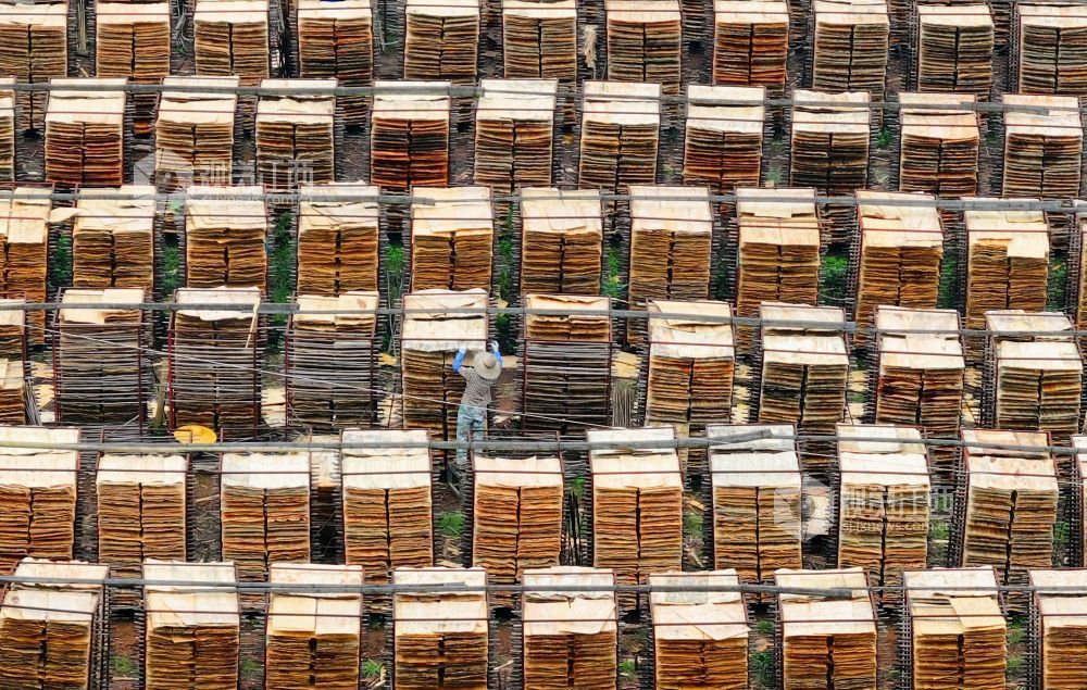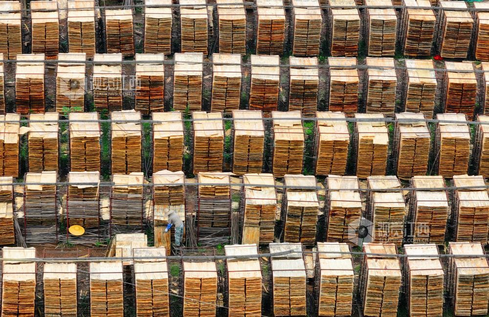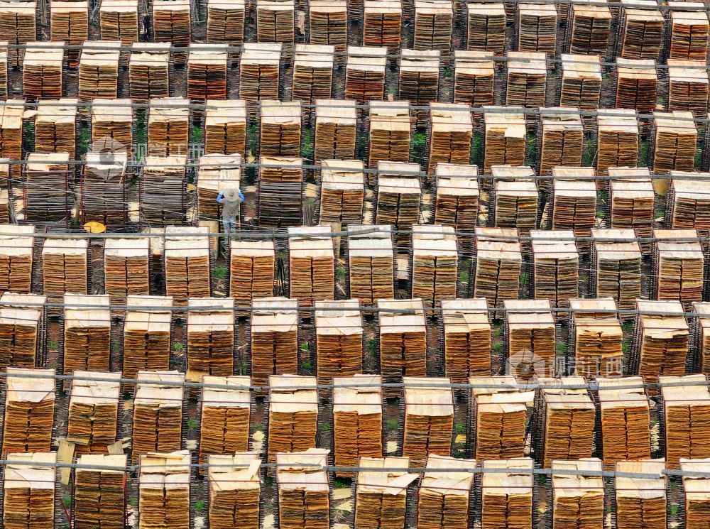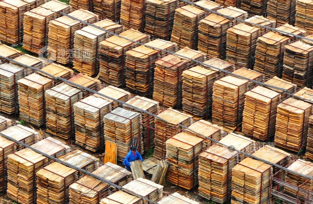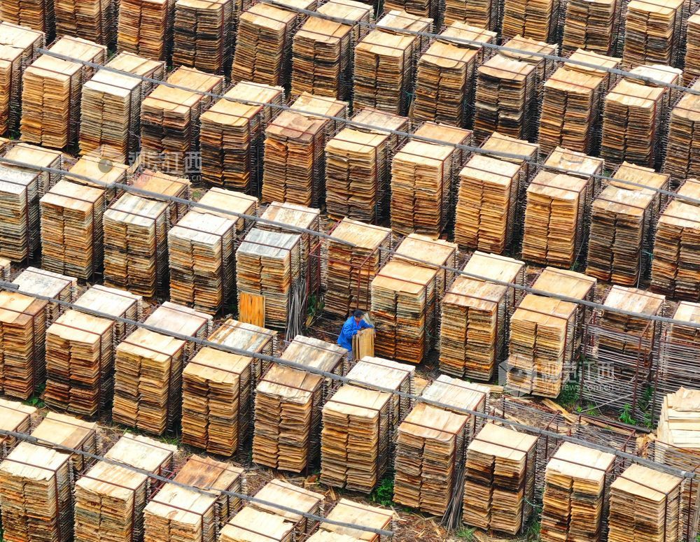 2026年4月14日,江西省吉安市泰和县塘洲镇东湖村板材加工厂,员工正在晾晒板材。