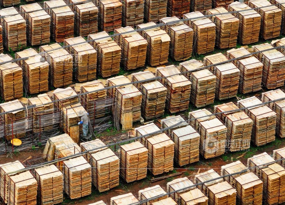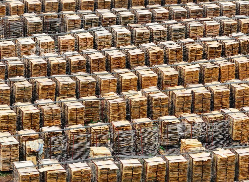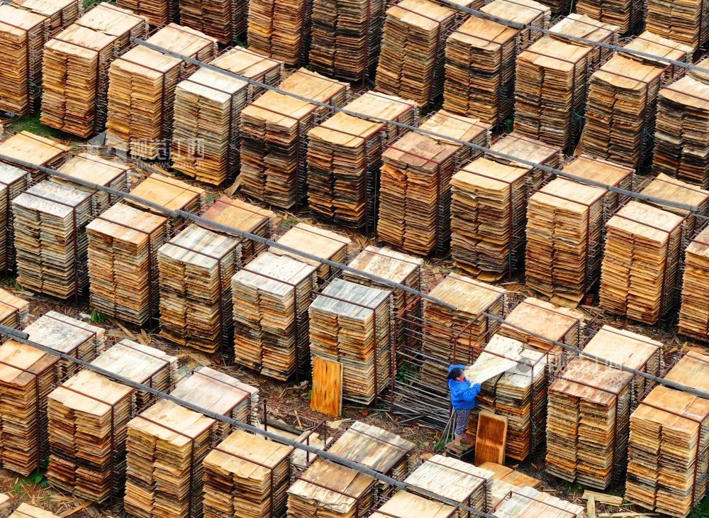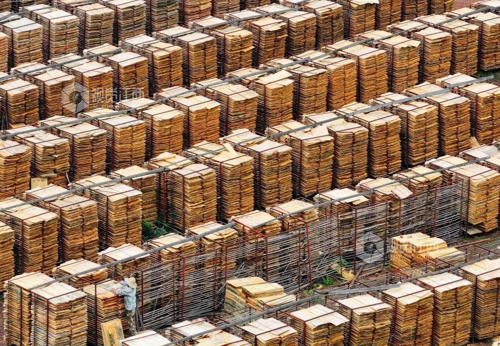 2026年4月14日,江西省吉安市泰和县塘洲镇东湖村板材加工厂,员工正在晾晒板材。