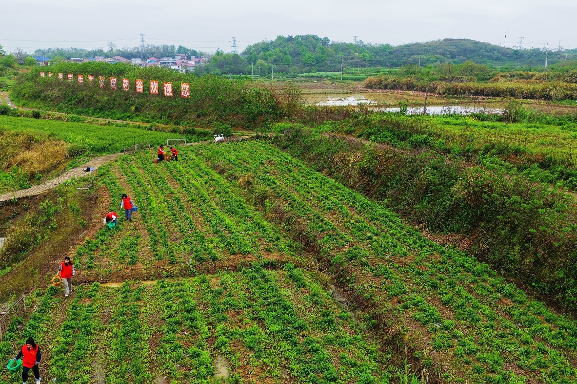 暖风和煦,万物勃发。4月10日,湖口县张青乡爱国村中药材产业基地里一派繁忙。来自张青乡新时代文明实践所的志愿者们身着红马甲,活跃在田间地头,抢抓春时,开展“助农采摘”活动,帮助农户抢收药材。