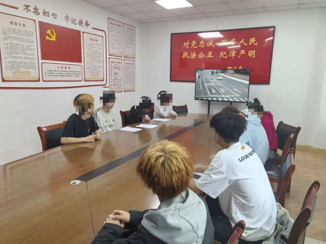 在警方的依法查处和耐心劝导下,8名涉事少年也主动来到交警大队,接受相应处理。