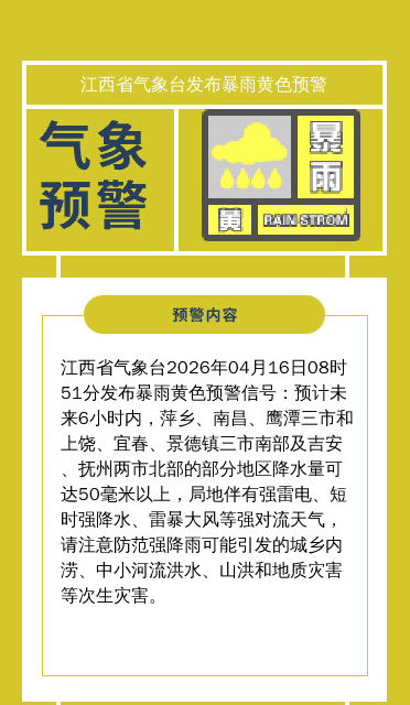 发布暴雨黄色预警信号
