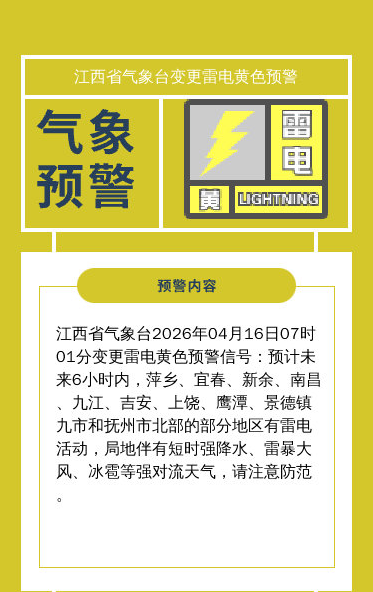 变更雷电黄色预警信号