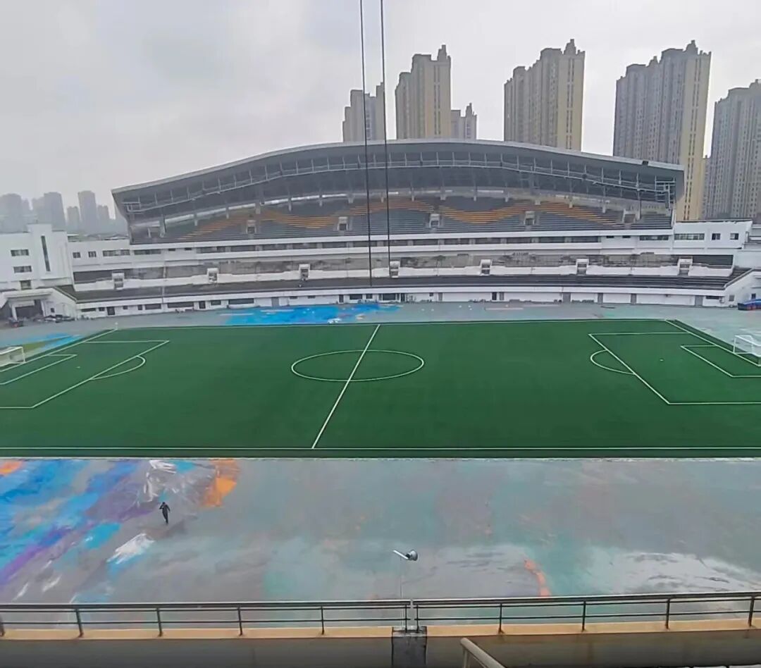 自今年2月全面开工以来,项目建设一路 “提速快跑”,跑出民生项目“抚州速度”。截至目前,跑道及足球场基层全部完工,球场水稳、沥青铺设、人造草坪施工全面结束,塑胶跑道正有序推进面层施工;功能用房装修、消防、水电、吊顶等配套工程同步加快;原有照明、音响、大屏已拆除完毕,桥架、线管、光纤铺设完成,智能化设备安装有序展开,各项工序高效衔接、压茬推进。