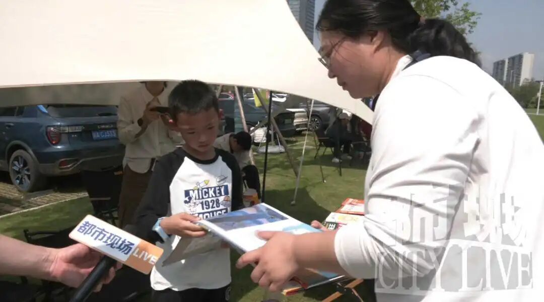 胡先生特意带着8岁的儿子胡光远,把家中闲置的一摞绘本和童书搬到了市集。“这本书好看在这个妖怪,它不会伤人。”小家伙指着自己带来的绘本,卖力地向路过的小朋友介绍。虽然带的书“没有数过,主要以绘本为主,蛮薄的”,但胡光远推销起来一点也不怯场。没一会儿,他就成交了好几单,家里的旧书变成了“流动的宝贝”。