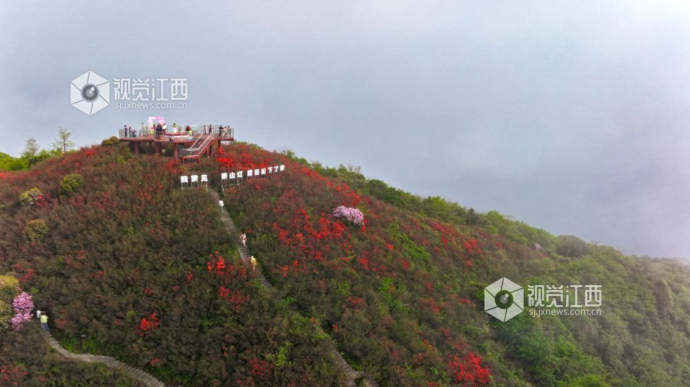 2026年4月18日,在江西省萍乡市湘东区广寒寨乡四八门景区的数千亩高山野生杜鹃花开正盛,层层叠叠的红色花海覆盖山顶,与云海、古道、竹海相映成趣,吸引众多市民游客前去赏花游玩,欣赏大自然的壮丽景观。 视觉江西 姚雨婷 摄