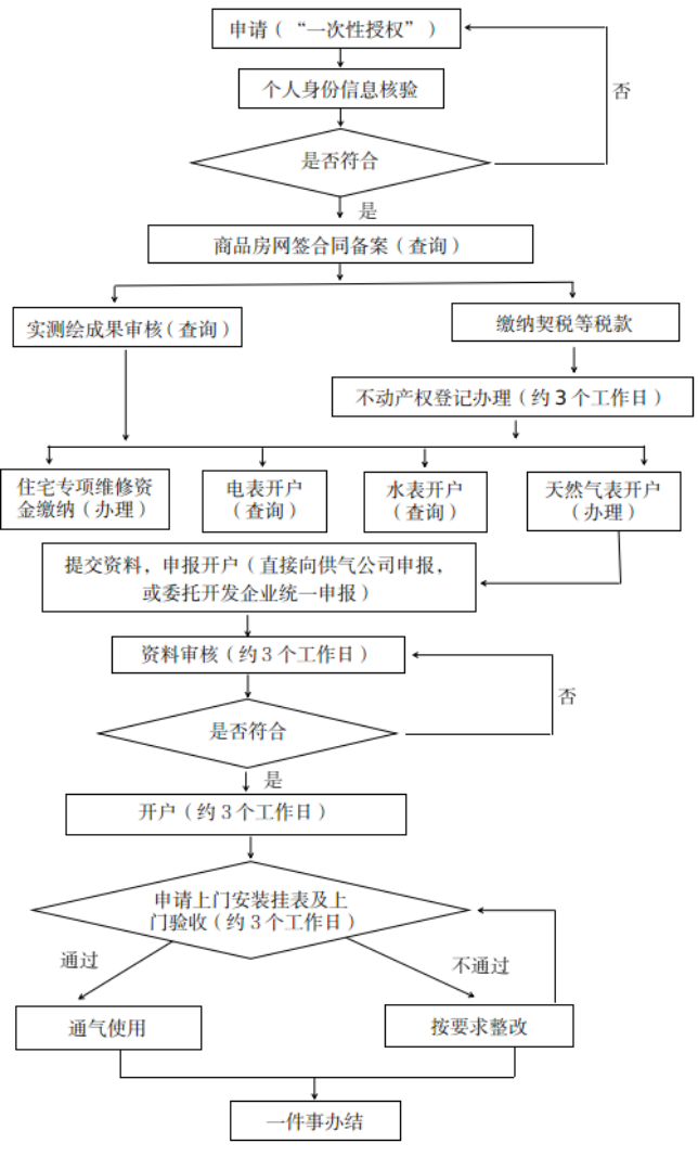 (一)优化完善服务事项。分类梳理住宅专项维修资金缴纳、个人身份信息核验、天然气表开户、不动产权证书办理等个人办理事项,和商品房网签合同备案、实测绘成果审核、水表电表开户等企业办理事项,个人在办理自身业务时,可同步查询企业端相关事项的办理进度和信息。全面整合个人办理事项的服务指南,精简重复提交的材料,明确数据共享渠道以及流程,打破部门间流程壁垒,变“群众跑多部门”为“部门内部协同跑”,形成高效办成“一件事”办理组合流程,实现“一次申请、同步办理、全程办结”。