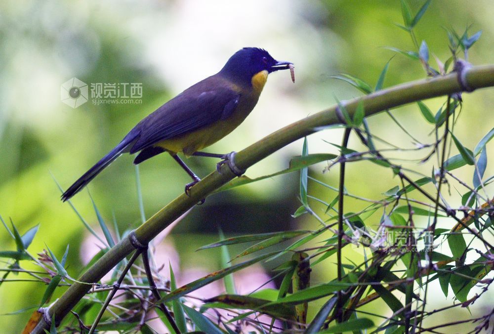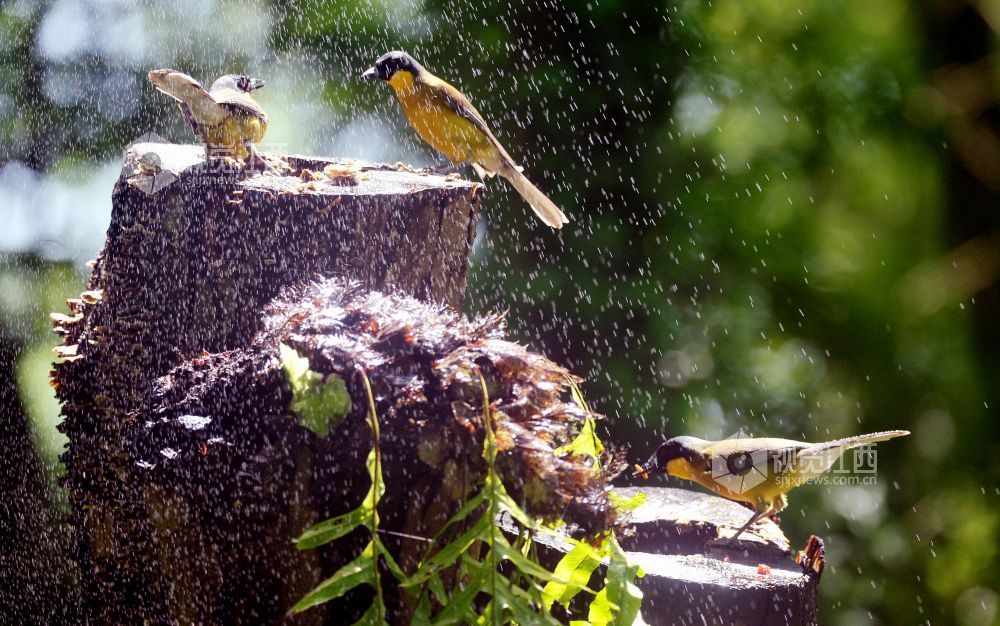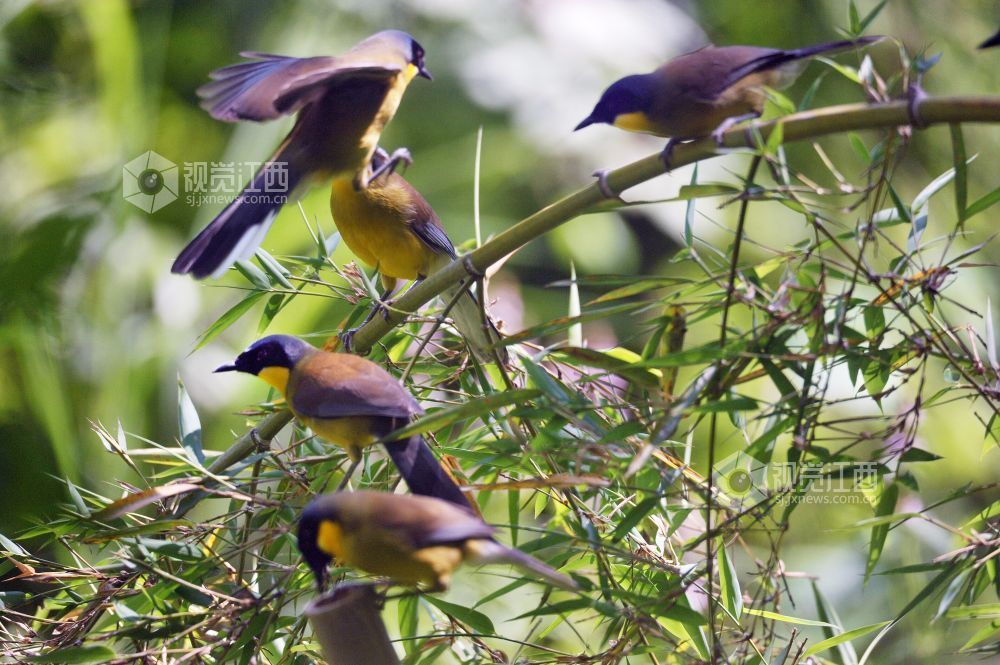 2026年4月19日,摄影爱好者在新岗山镇板桥村附近成功拍摄到数十只蓝冠噪鹛正在觅嬉戏食、衔枝筑巢的镜头。