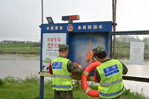 此外,队员们对沿河设置的防溺水“四个一”设施逐一进行检查,确保设施完好、随时可用,为紧急救援提供坚实保障。