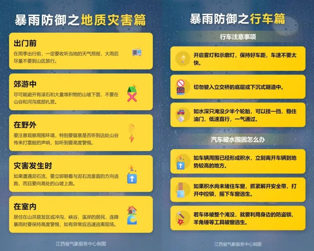 公众出行与安全建议防范:前期降水偏多,土壤含水量高,请注意远离河道、边坡、低洼地带、地质灾害隐患点;雷雨天气减少户外活动,驾车减速慢行,及时关注气象预警信息。抓紧收起晾晒衣物、关闭门窗,检查阳台物品,避免风雨造成影响。