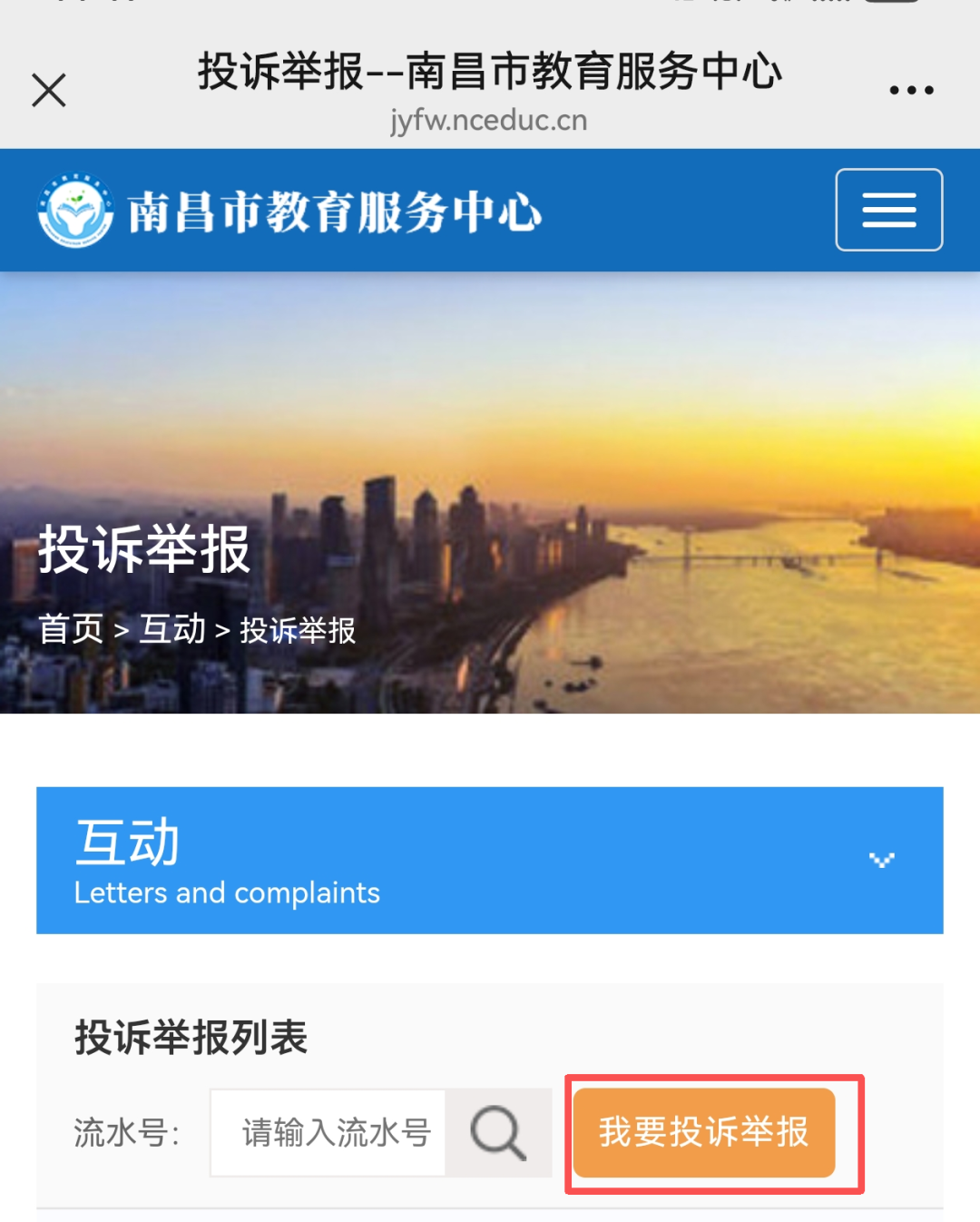 在官网首页查看“南昌市教育服务中心(https://jyfw.nceduc.cn/service/index.htm)”,选择【投诉咨询】,点击【我要投诉举报】,即可进入注册界面,填报个人信息。