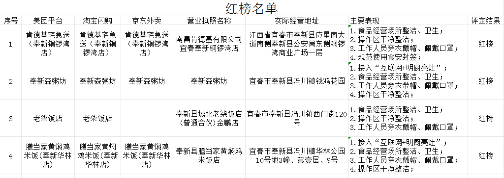对红榜单位,我县市场监管局将通过官方公众号、本地媒体、外卖平台等多渠道宣传推广,引导全县网络餐饮单位对标学习、规范提升,并在日常监管中适当降低检查频次,给予信用激励。