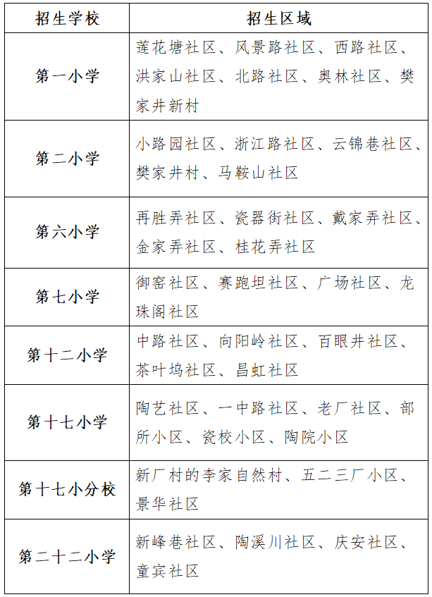 1.本招生区域结合社区和小区进行划分。在招生区域中,凡列出来的小区名称的小区不归属所在社区的招生区域。