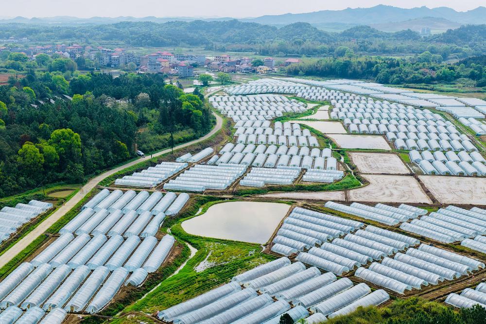 近日,从空中俯瞰上高县新界埠镇端溪村百亩西瓜种植基地,大棚连片成海、绿意绵延,一幅生机勃勃的现代农业画卷尽收眼底。