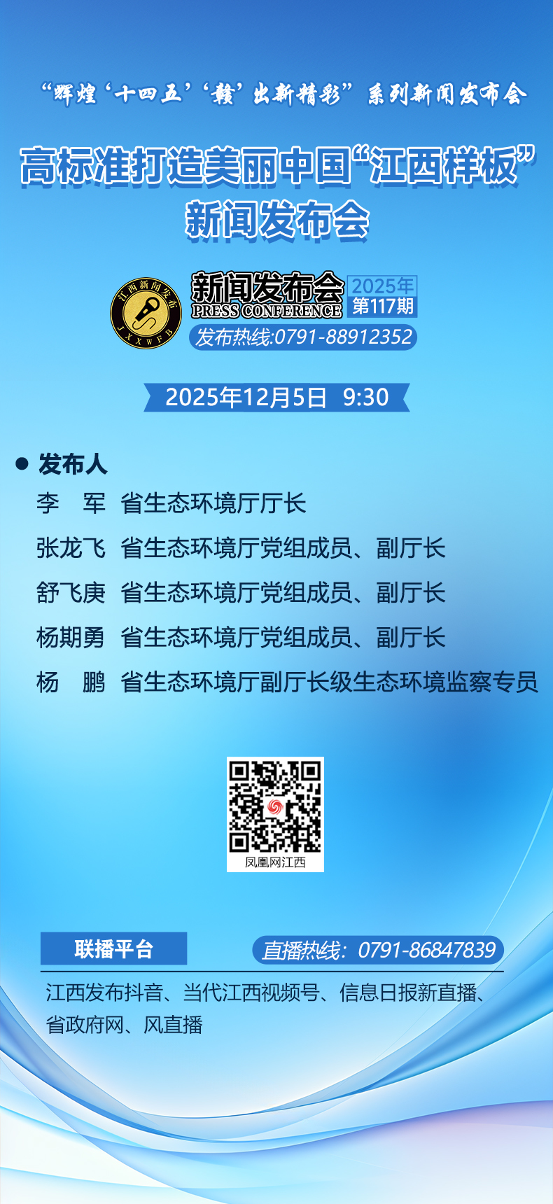 省生态环境厅党组成员、副厅长杨期勇:省委、省政府一直高度重视生态环境监测监管能力建设,2023年12月,省政府办公厅印发《江西省生态环境监管能力提升三年行动方案》,投入资金16.8亿元全方位提升监测、执法、应急等能力水平。全省生态环境系统加快建设功能完备的监测体系、专业高效的督察执法体系、科学快速的应急处置体系、坚实有力的科技支撑体系、精干务实的人才队伍体系、覆盖全面的法规制度体系,切实为全省污染防治攻坚战和美丽江西建设提供有力支撑保障。